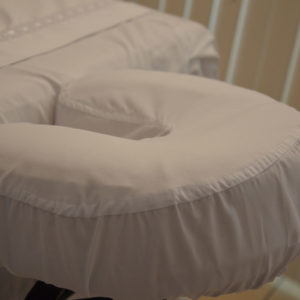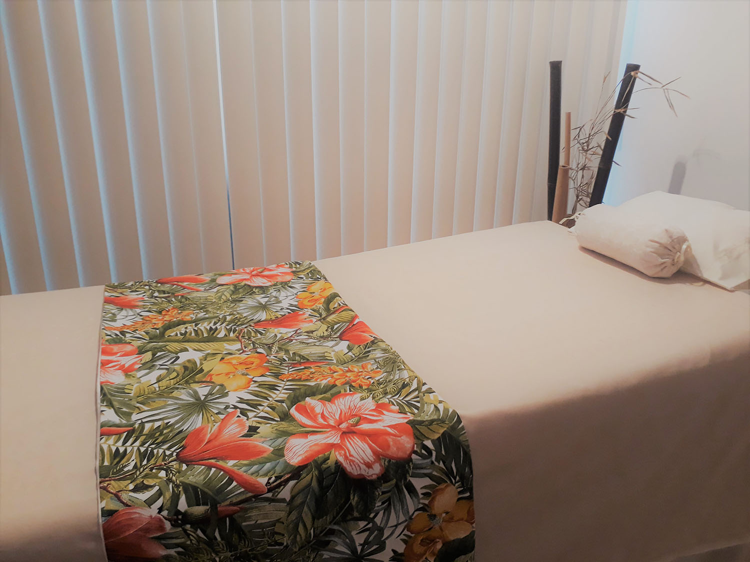 Camino para camilla, reversible, liso perla y estampado flores rojas, resistente al agua
