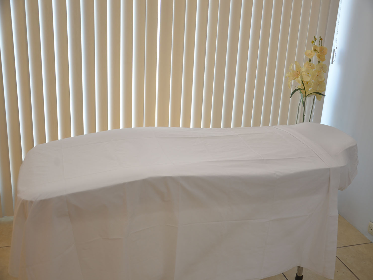 Sábana cubre camilla en tela algodón liso, sin encaje en la parte superior