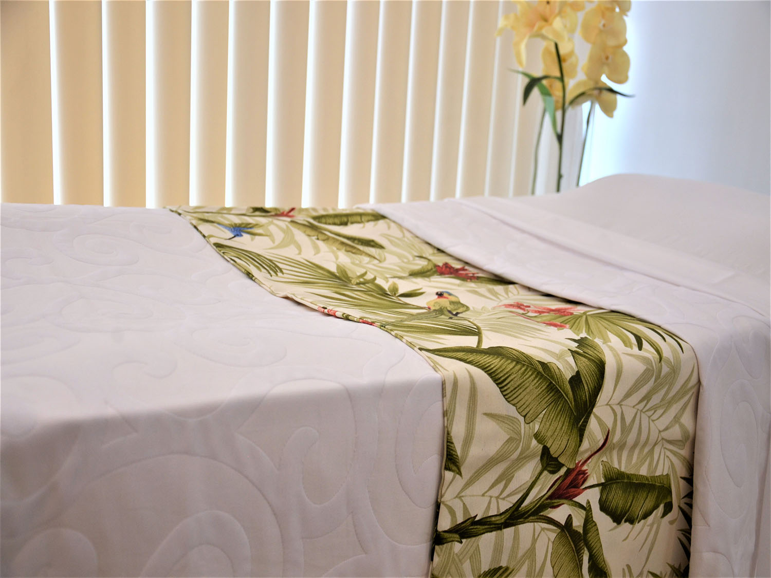 Sábana cubre camilla decorativa de lujo a en tela acolchada blanca